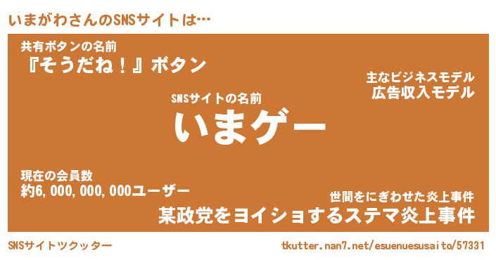 | 肩書あだ名 | 『いまがわ社長』『いまがわ国家主席』 |