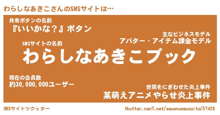 | 男性向けラノベタイトル風あだ名 | 『ワラシナアキコアートオンライン』 |