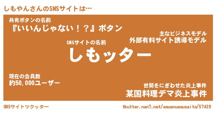 | 胡散臭い通販商品みたいなあだ名 | 『億万長者になれるブレスレット…その名も「しもやん」』 |