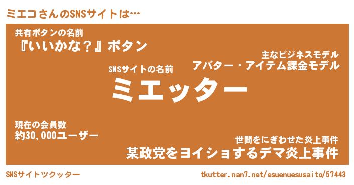 | ファンタジー風あだ名 | 『ミエフェル』『エターナルミエコー』 |