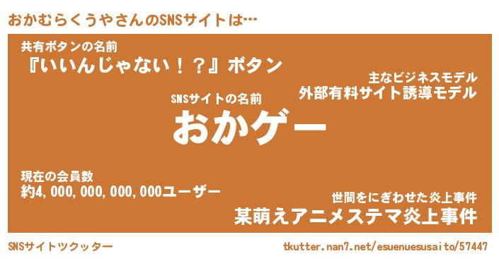 | 男性向けラノベタイトル風あだ名 | 『おかむらくうやの憂鬱』 |