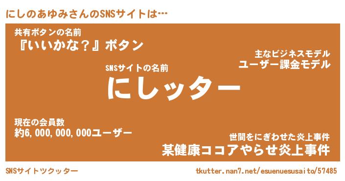 | ヒーロー風カッコイイあだ名 | 『スーパーニシノアユミ』『幻影騎士ニシ』 |