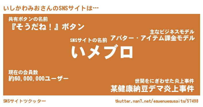 | 肩書あだ名 | 『いしかわみお店長』『いしかわみお教頭』 |