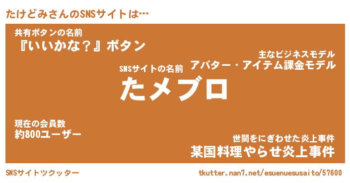 | 意味不明あだ名 | 『ペロリンたけどみ』『永久保存たけどみ』 |