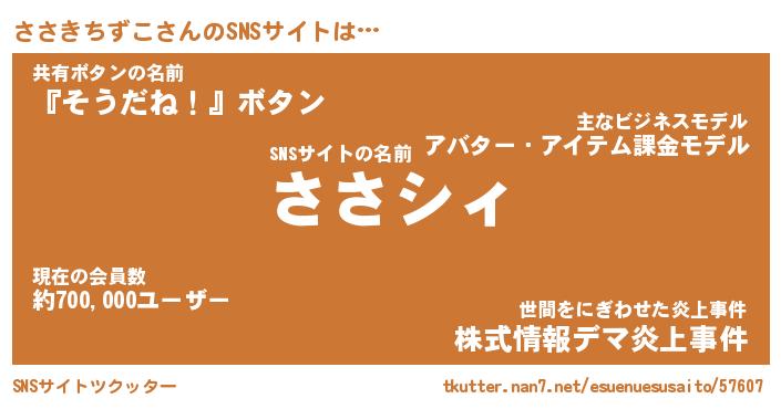 | ヒーロー風カッコイイあだ名 | 『スーパーササキチズコ』『黄金騎士ササ』 |