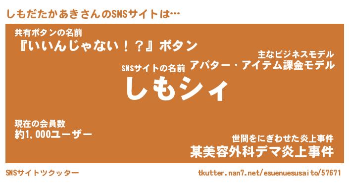 | 胡散臭い通販商品みたいなあだ名 | 『必ず成功する霊験あらたかなお札…その名も「しもだたかあき」』 |