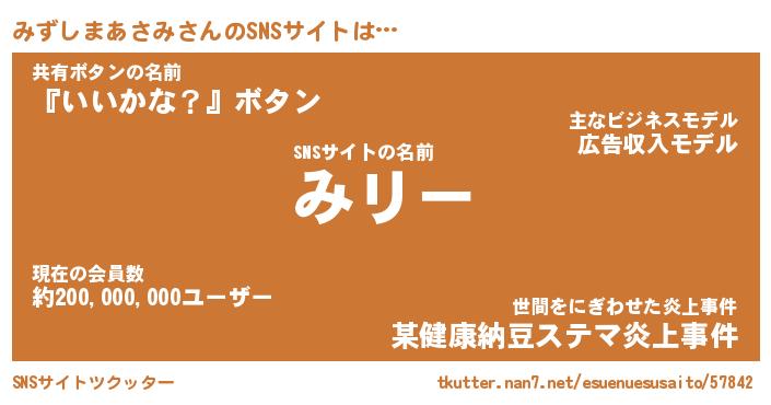 | 恥ずかしいあだ名 | 『プリティーみずしまあさみ』『みずちん』 |
