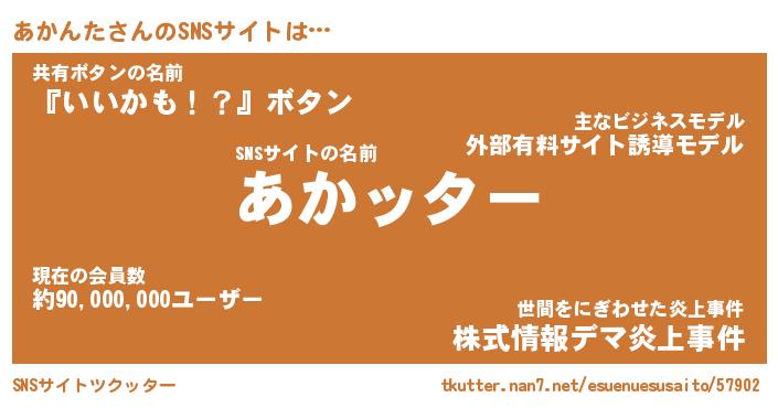 | 男性向けラノベタイトル風あだ名 | 『アカンタアートオンライン』 |