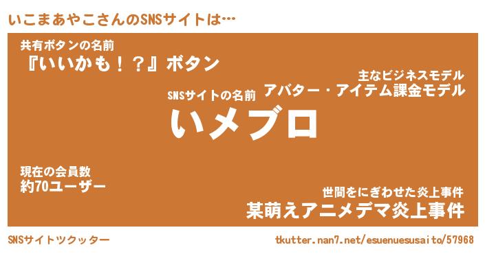 | 男性向けラノベタイトル風あだ名 | 『イコマアヤコアートオンライン』 |