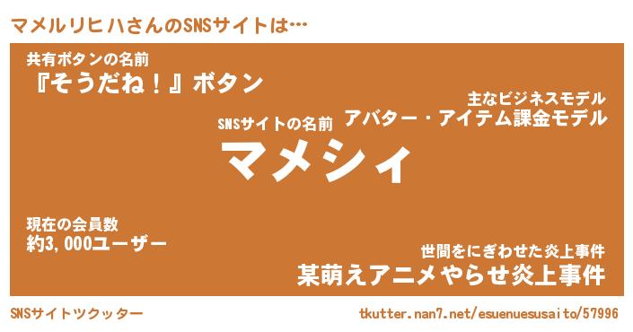 | ヒーロー風カッコイイあだ名 | 『スーパーマメルリヒハ』『幻影騎士マメ』 |