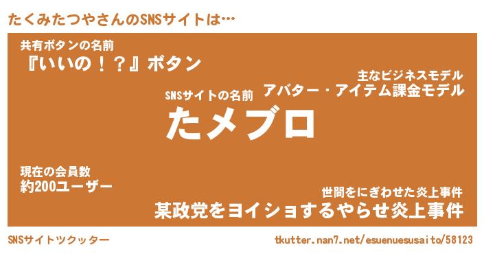 | 男性向けラノベタイトル風あだ名 | 『タクミタツヤアートオンライン』 |