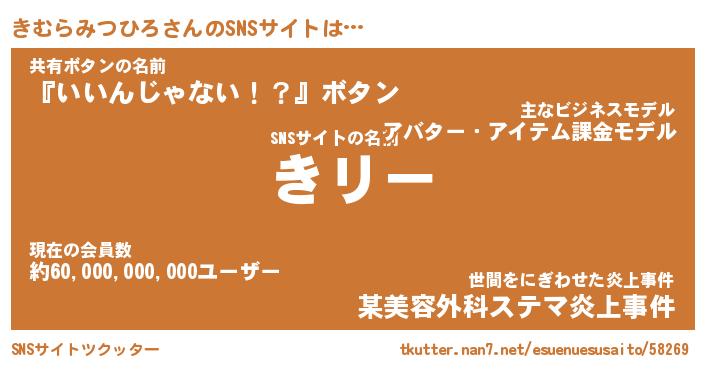 | 肩書あだ名 | 『きむらみつひろ御曹司』 |