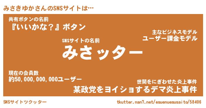 | 胡散臭い通販商品みたいなあだ名 | 『億万長者になれるブレスレット…その名も「みさきゆか」』 |