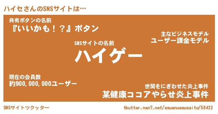 | 胡散臭い通販商品みたいなあだ名 | 『必ず成功するブレスレット…その名も「ハイセ」』 |