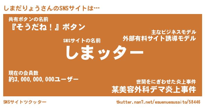 | 男性向けラノベタイトル風あだ名 | 『シマダリョウアートオンライン』 |