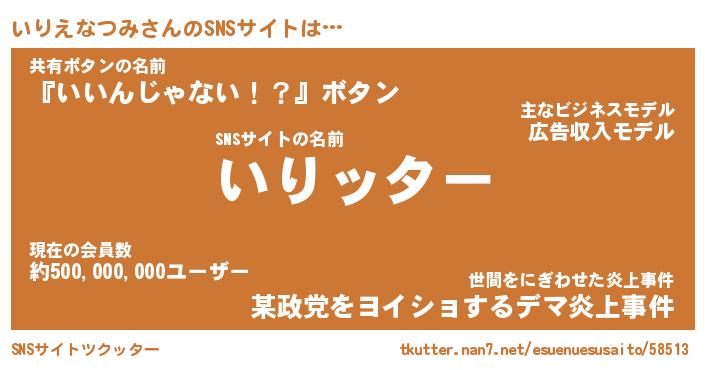 | 胡散臭い通販商品みたいなあだ名 | 『億万長者になれるブレスレット…その名も「いりえなつみ」』 |