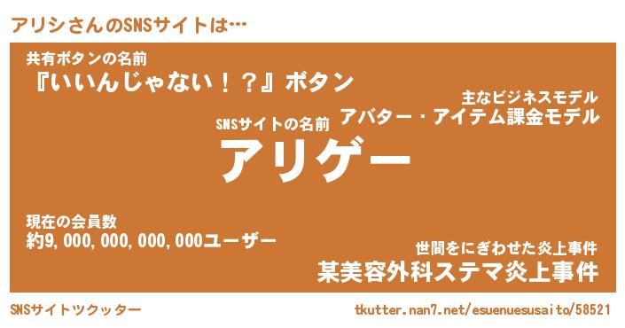 | 意味不明あだ名 | 『ペロリンアリシ』『アリシフォーエバー』 |