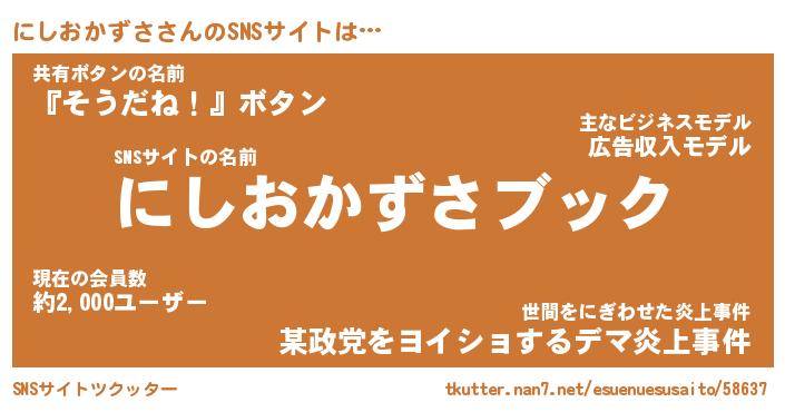 | 肩書あだ名 | 『にしおかずさ御曹司』 |