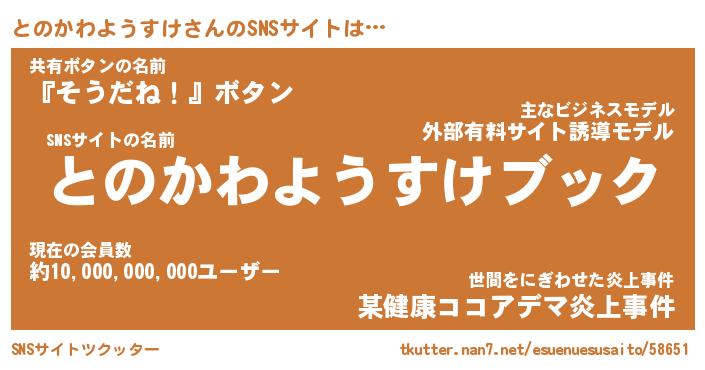 とのかわようすけさんのSNSサイトをツクッター!