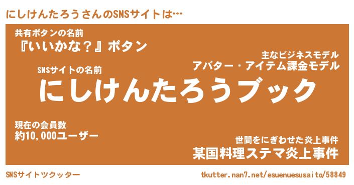 | 肩書あだ名 | 『にしけんたろう社長』 |