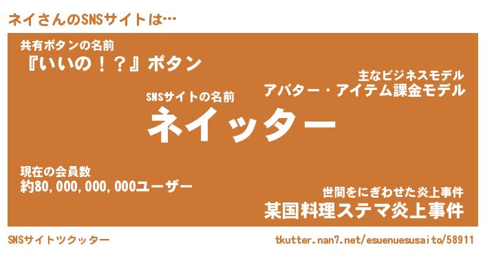 | ヘコむあだ名 | 『ネイもー』『レバニラ』『ネイ(笑)』 |