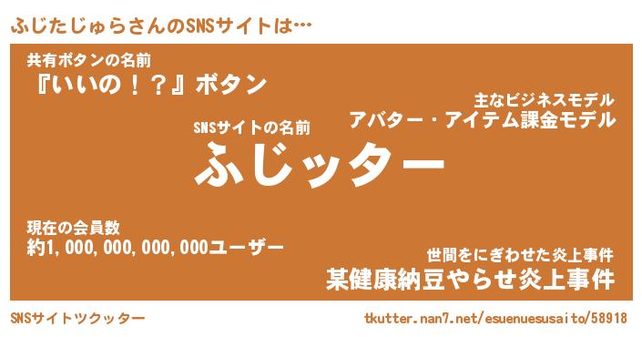 | 胡散臭い通販商品みたいなあだ名 | 『億万長者になれるブレスレット…その名も「ふじたじゅら」』 |
