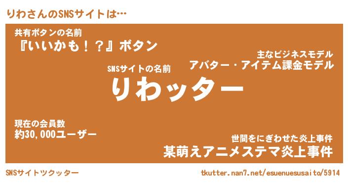 | ヘコむあだ名 | 『りわにゅー』『酢こんぶ』 |