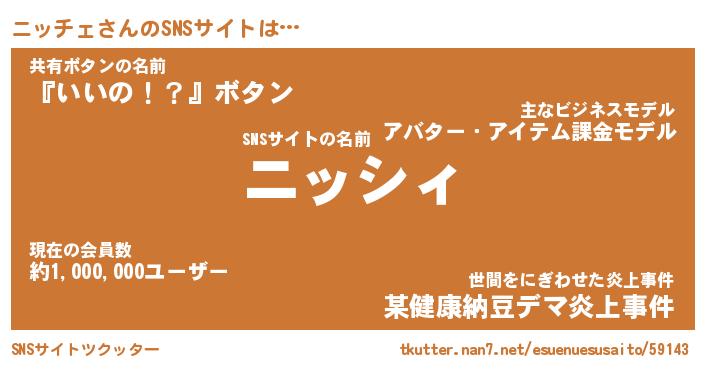 | 意味不明あだ名 | 『ペロリンニッチェ』『永久保存ニッチェ』 |