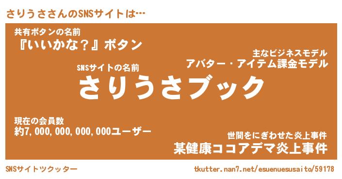 | 意味不明あだ名 | 『ペロリンさりうさ』『永久保存さりうさ』 |