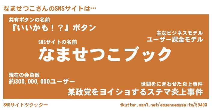 | ファンタジー風あだ名 | 『ナマフェル』『エターナルナマセツコー』 |
