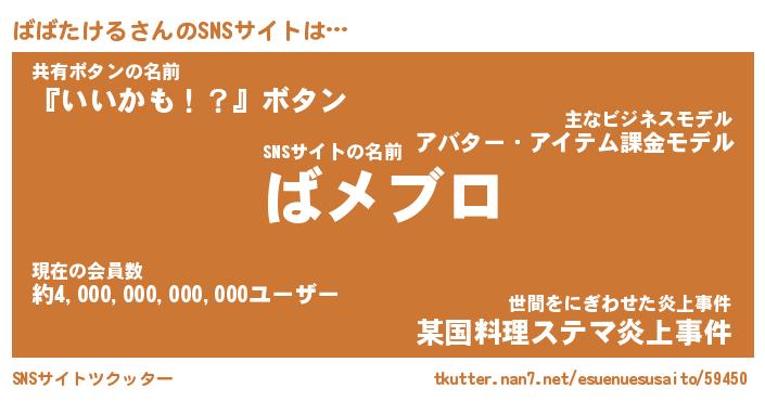 | 肩書あだ名 | 『ばばたけるCEO』『ばばたける総理大臣』 |