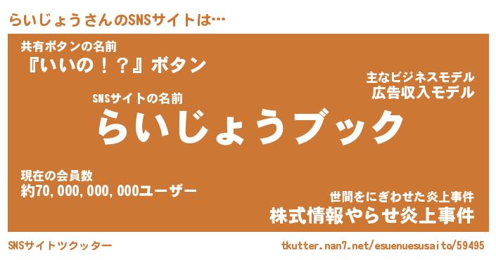| 肩書あだ名 | 『らいじょう御曹司』『らいじょう大統領』 |