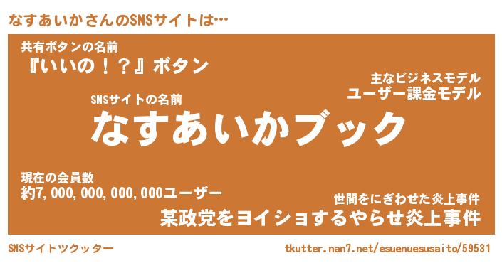 | ファンタジー風あだ名 | 『ナスフェル』『エターナルナスアイカー』 |