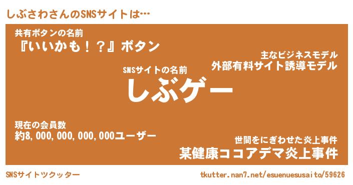 | 意味不明あだ名 | 『ペロリンしぶさわ』『永久保存しぶさわ』 |