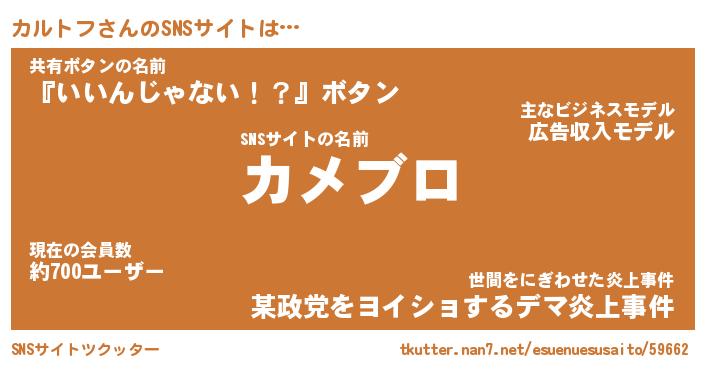| 意味不明あだ名 | 『ペロリンカルトフ』『永久保存カルトフ』 |