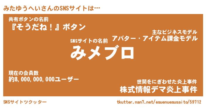 | ヘコむあだ名 | 『みたにー』『豆乳』『みた太郎』 |