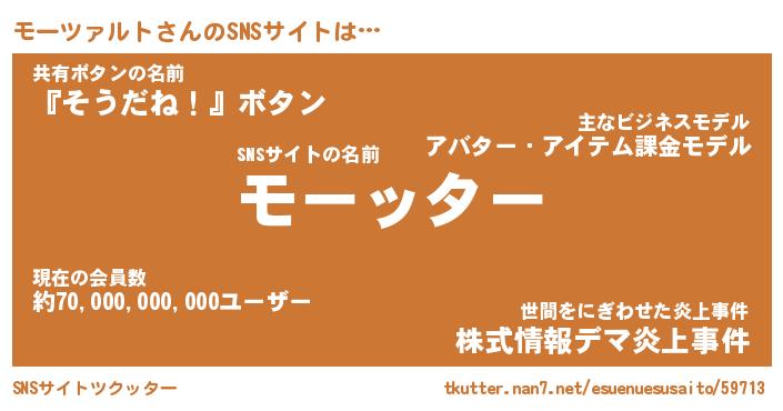 | 男性向けラノベタイトル風あだ名 | 『モーツァルトアートオンライン』 |