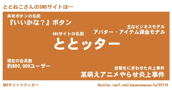 | 意味不明あだ名 | 『ペロリンととねこ』『永久保存ととねこ』 |