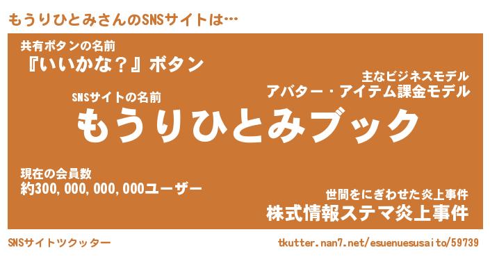 | 胡散臭い通販商品みたいなあだ名 | 『億万長者になれる霊験あらたかなお札…その名も「もうりひとみ」』 |