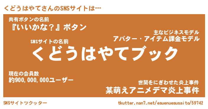| 男性向けラノベタイトル風あだ名 | 『クドウハヤテアートオンライン』 |
