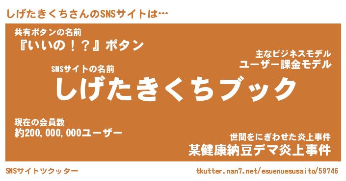 | 肩書あだ名 | 『しげたきくち店長』『しげたきくち先生』 |