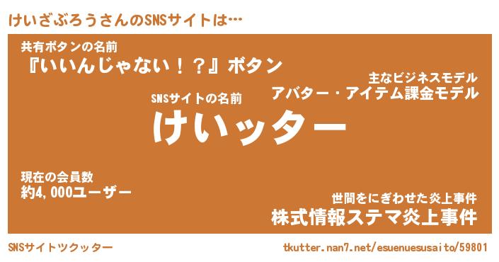 | 胡散臭い通販商品みたいなあだ名 | 『億万長者になれるブレスレット…その名も「けいざぶろう」』 |