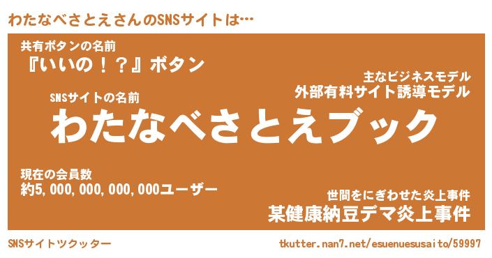 | 肩書あだ名 | 『わたなべさとえCEO』 |