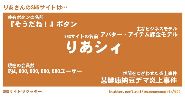 | 胡散臭い通販商品みたいなあだ名 | 『必ず成功する霊験あらたかなお札…その名も「りあ」』 |