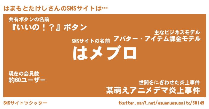 | 男性向けラノベタイトル風あだ名 | 『ハマモトタケシアートオンライン』 |
