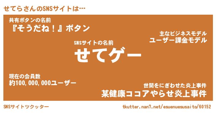 | 肩書あだ名 | 『せてらCEO』『せてら大統領』 |