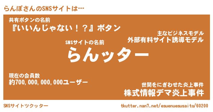 | 肩書あだ名 | 『らんぽ社長』『らんぽ国家主席』 |