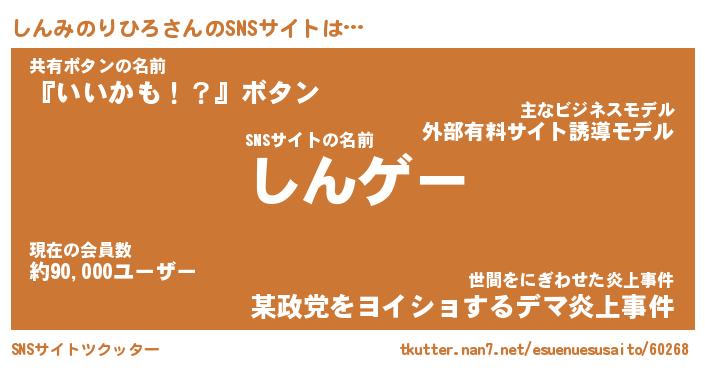 | 男性向けラノベタイトル風あだ名 | 『しんみのりひろの憂鬱』 |