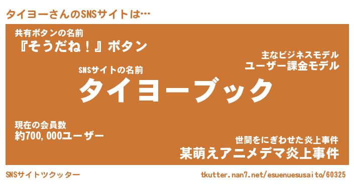 | 男性向けラノベタイトル風あだ名 | 『タイヨーアートオンライン』 |