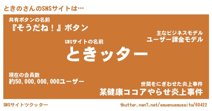 | 肩書あだ名 | 『ときのCEO』『ときの国家主席』 |